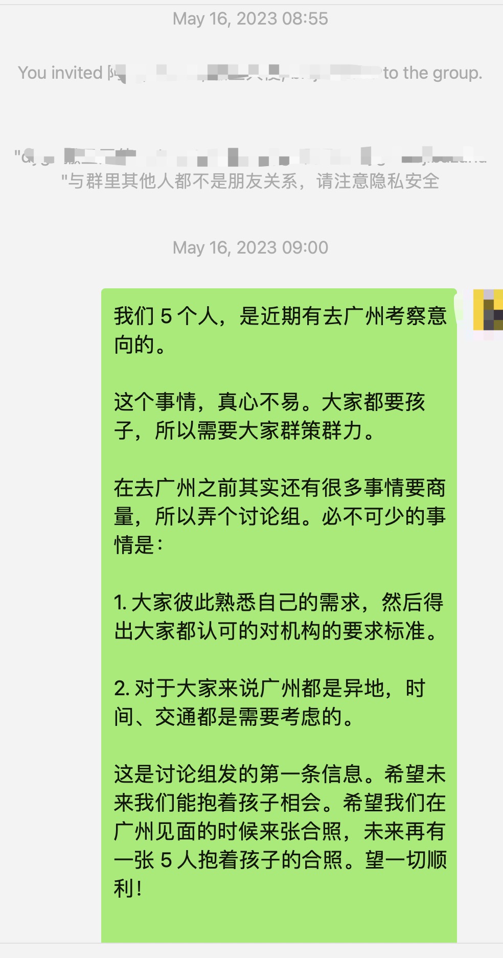 在确定代孕这个事之后不久,经过了一段时间的探索,便决定我要组团一起代孕。